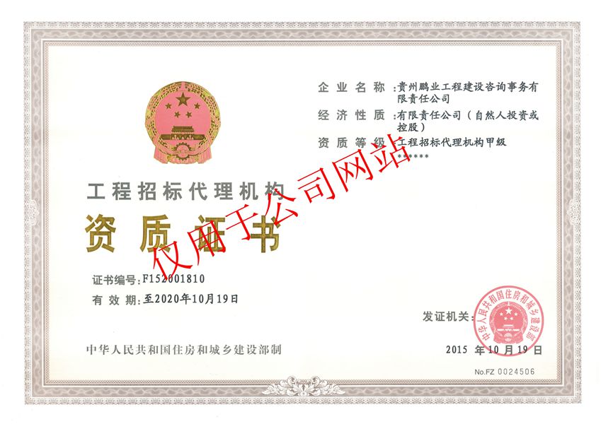 工程招標代理甲級、工程造價咨詢甲級、工程監理甲級、中央投資項目招標代理甲級、政府采購代理甲級